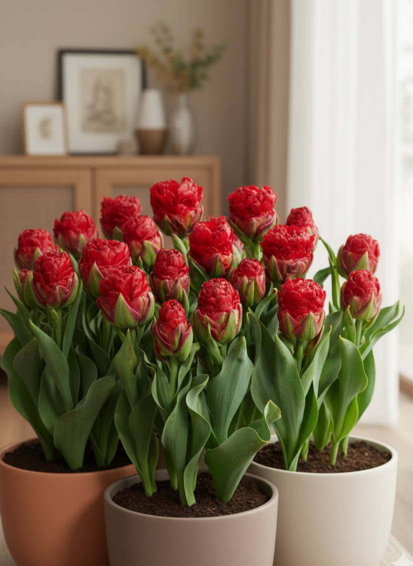 Додаткового зимового укриття кімнатні тюльпани не потребують — достатньо стабільної температури в приміщенні та легкого догляду.
