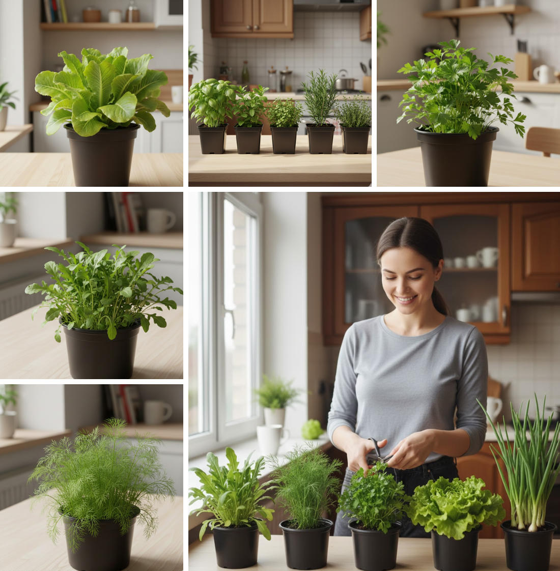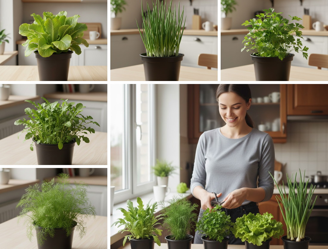 Компактний розмір дозволяє розмістити їх навіть на маленькому підвіконні, а акуратний вигляд робить горщики частиною затишного кухонного декору. До того ж усі рослини легко відновлюються після зрізання, тож кожен горщик даруватиме вам свіжу зелень і пряні аромати багато тижнів поспіль.