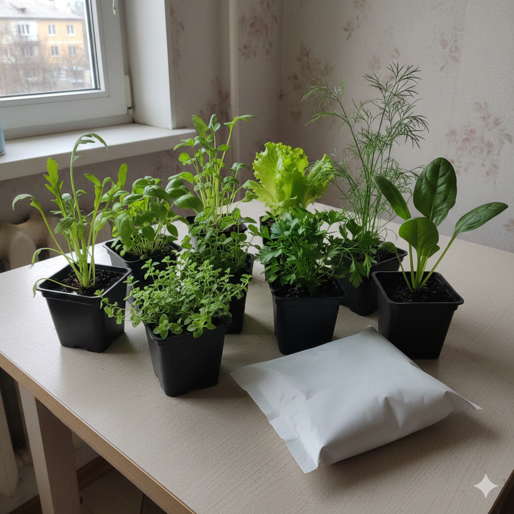 Наші готові набори чудово ростуть у звичайних кімнатних умовах — без теплиць, ламп та зайвого догляду.
